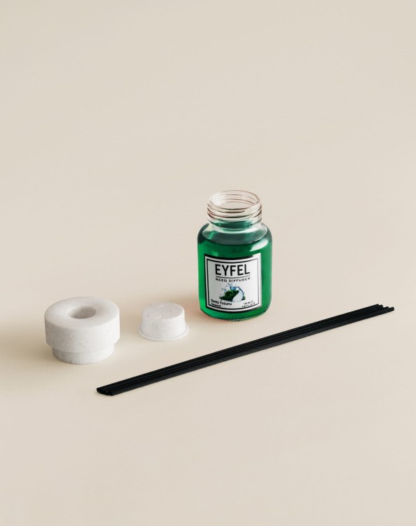 Odświeżacz powietrza w formie patyczków marki Eyfel, zapewni długotrwałą świeżość w Twoim otoczeniu. Patyczki zapachowe to doskonały odświeżacz powietrza, jak rownież piękny element dekoracyjny. Dzięki nowoczesnej formie idealnie wpasowuje się w wystrój wnętrza.Zmysłowy zapach zamknięty został w ekskluzywnej, szklanej butelce. Emituje wspaniały aromat dzięki zastosowaniu patyczków zapachowych.Elegancki biały kartonik z czarnymi patyczkami to idealny prezent do nawet najbardziej eleganckiego pomieszczenia.Olejek zapachowy został wysoce zaperfumowany intensywnym i długotrwałym zapachem.