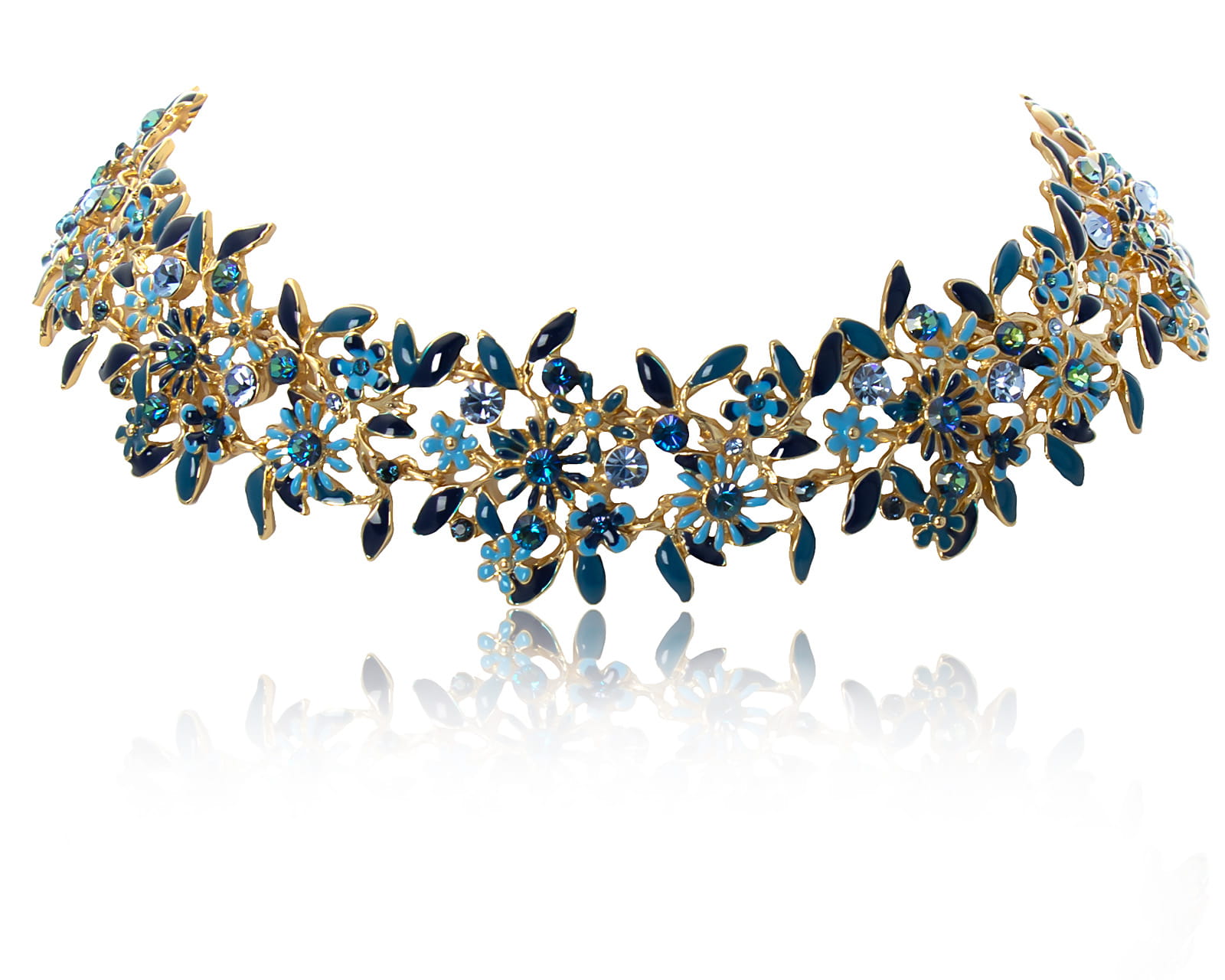 Choker niebieskie kwiatuszki z kryształkami z kolekcji Blossom (C8157AU/1/N)