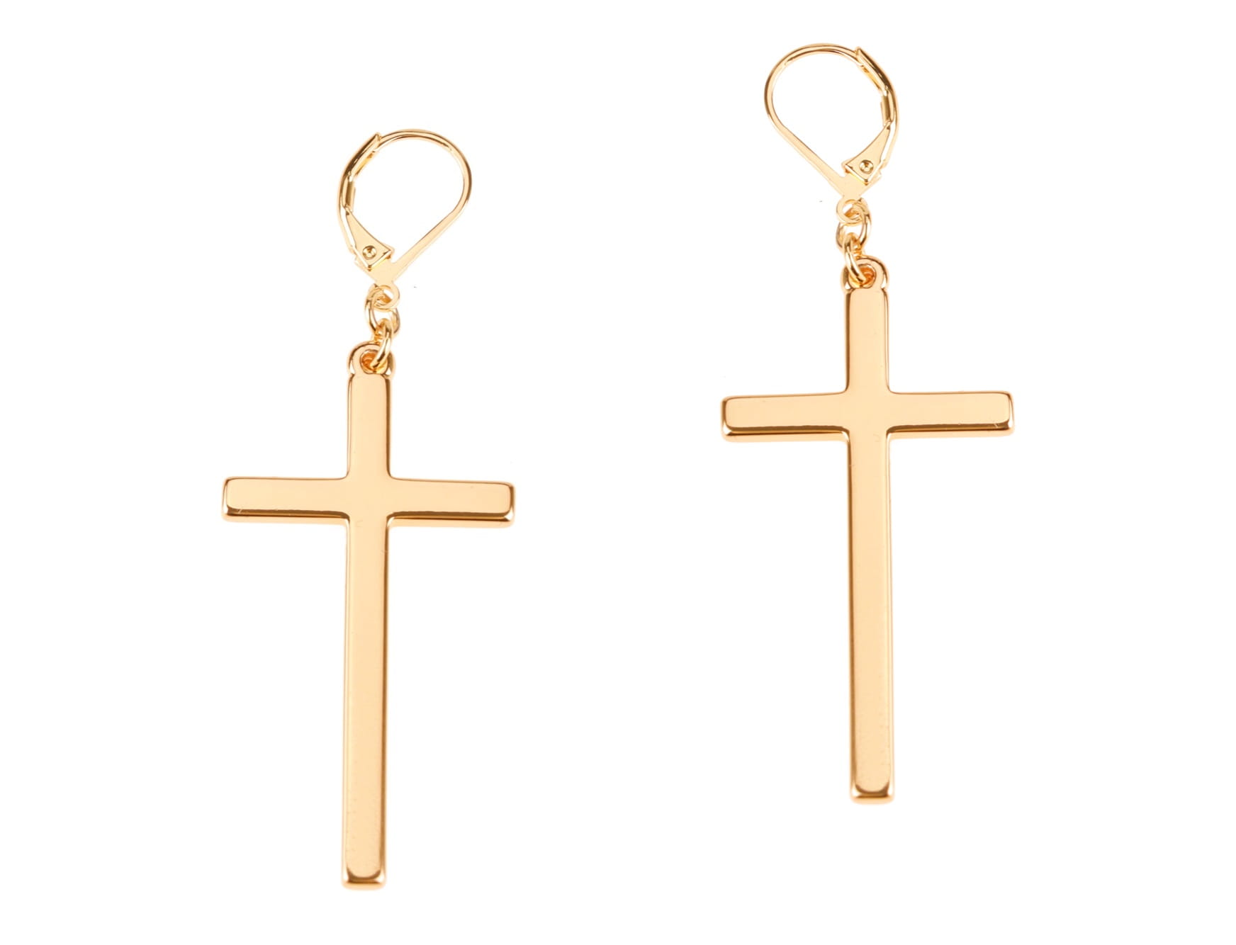Niezwykle modne wiszące kolczyki krzyże. Kolczyki o długości 6,5cm i szerokości 2,2cm. Kolczyki pozłacane.