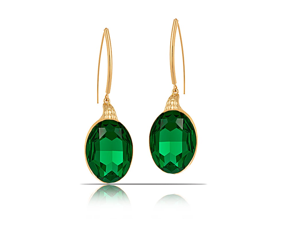 Pozłacane kolczyki z dużym, mieniącym się kamieniem Majestic Green Primero.