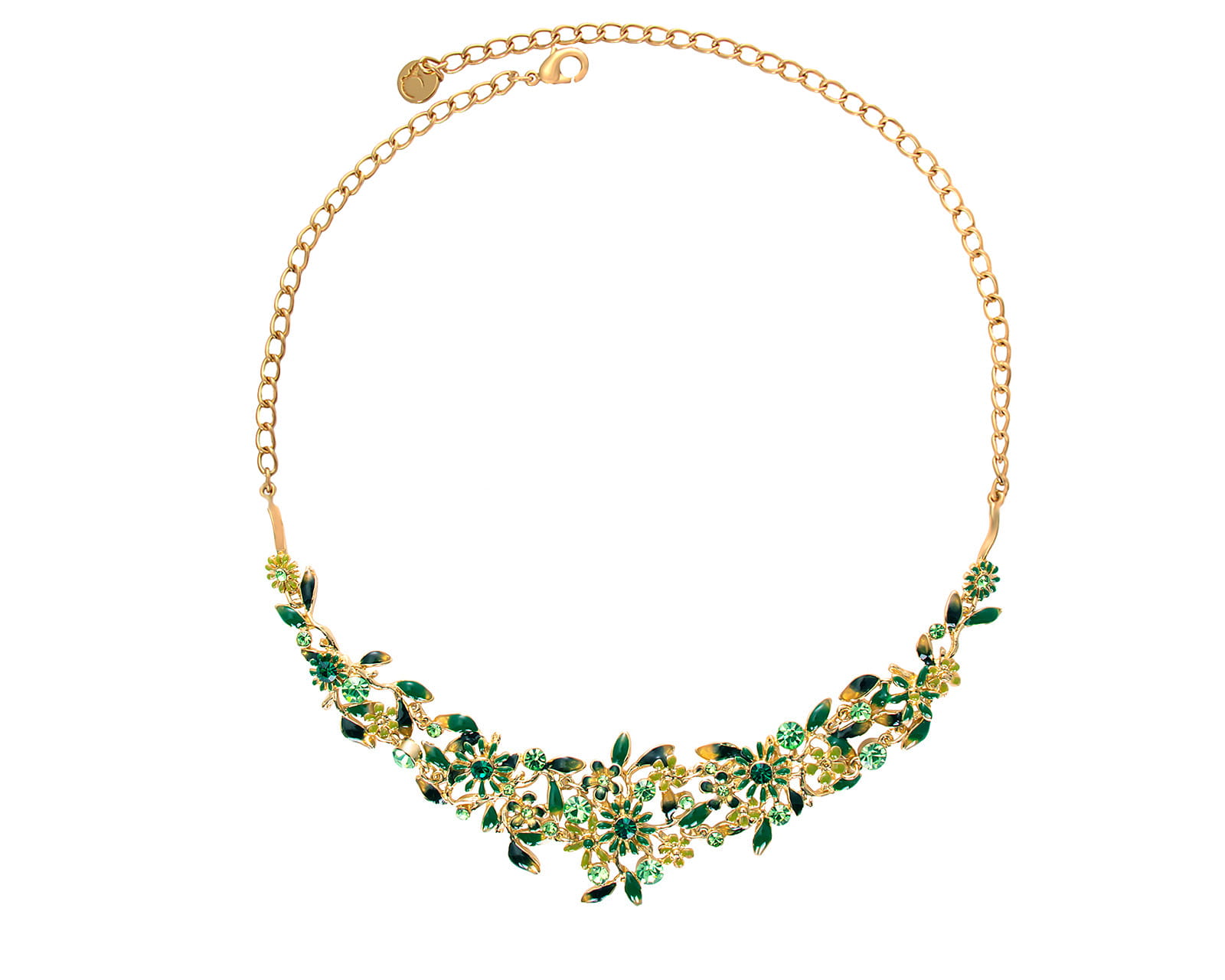 Wykonana z najwyższej jakości materiałów, pozłacana powierzchnia kolii została ręcznie zdobiona w różnych odcieniach zieleni emalią, która nadaje jej wyjątkowy, artystyczny charakter.