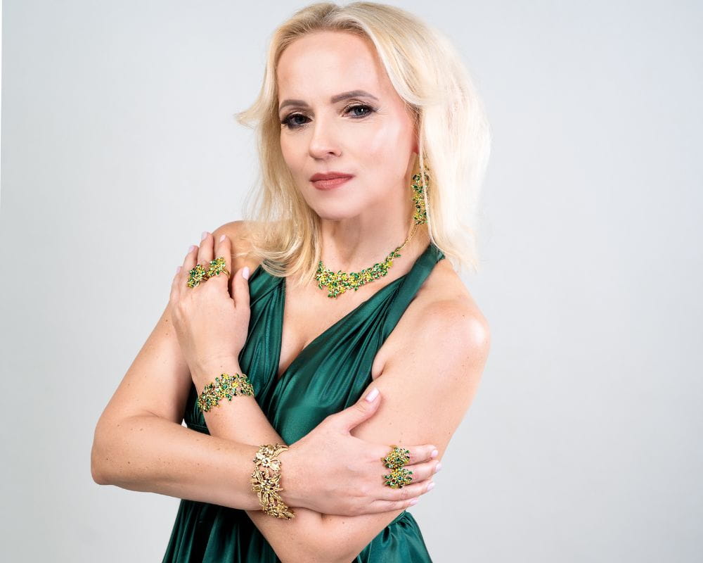 Dodatkowo, blask kryształków Preciosa sprawia, że każdy detal kolii przyciąga uwagę.