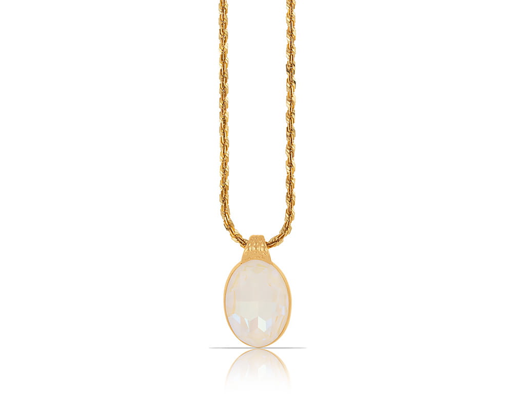 Pozłacany naszyjnik z dużym, mieniącym się kamieniem White Opal Primero.
