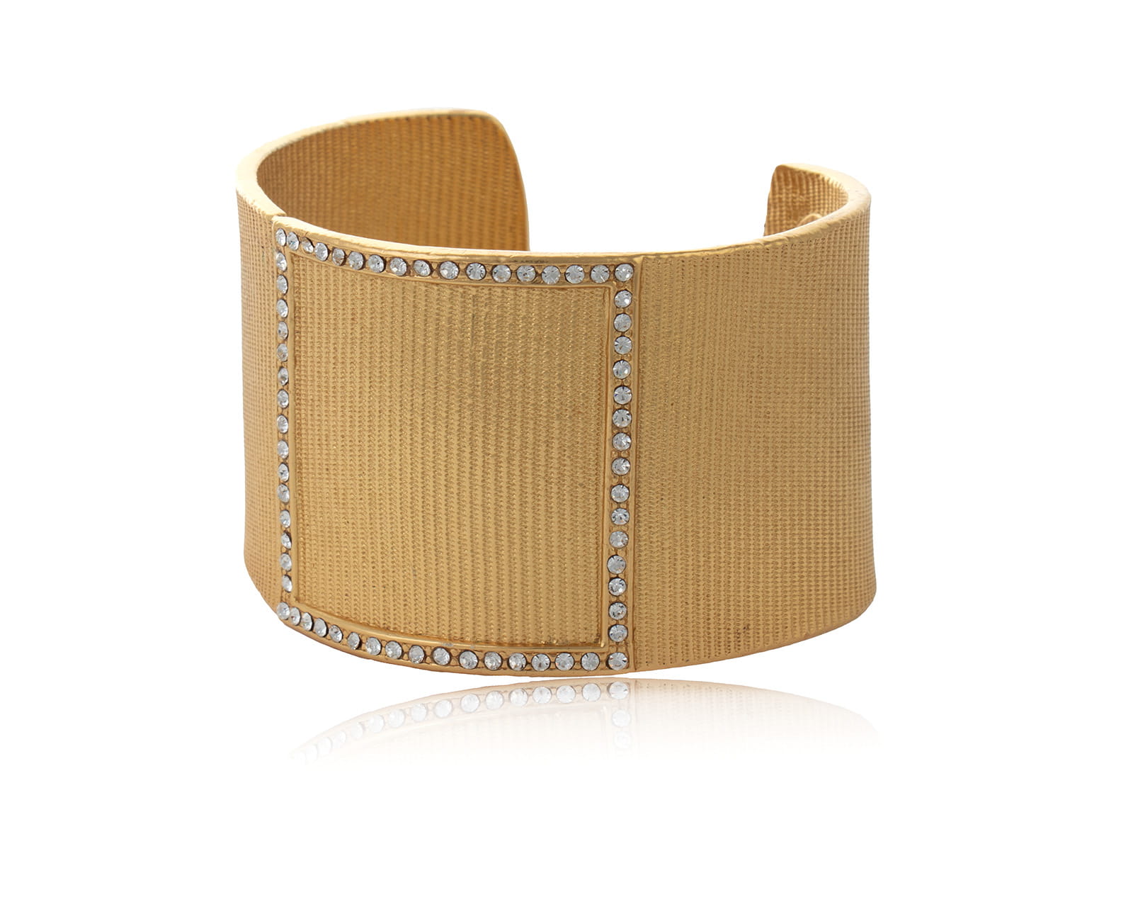 Szeroka, sztywna bransoletka z kryształkami Preciosa ułożonymi w kwadrat, otula nadgarstek, nadając mu wyjątkowy blask i elegancję.